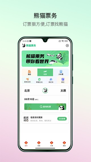 熊猫票务是一款专业的出行订票软件,为广大用户朋友们提供最全面的票务系统,包括机票、火车票、酒店、景区等一系列服务,线上操作方便快捷,平台内所覆盖的航空、高铁平台也是非常丰富的,可以满足不同用户的出行需求,所有数据都是官方渠道,小伙伴们可以放心购买,一站式特色服务,让出行更轻松、高效。感兴趣的小伙伴们快来下载体验吧!