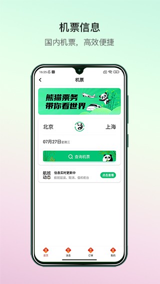 1、【机票】一站式预订查询机票,一手掌握订机票订酒店抢购火车票预定信息。