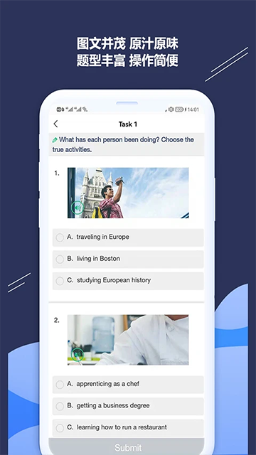 2、口语测评:每一位用户们都可以通过该软件进行口语测试,让我们能对自己的口语水平有一个明确的认知,这样才能找到最适合自己的口语学习方法。