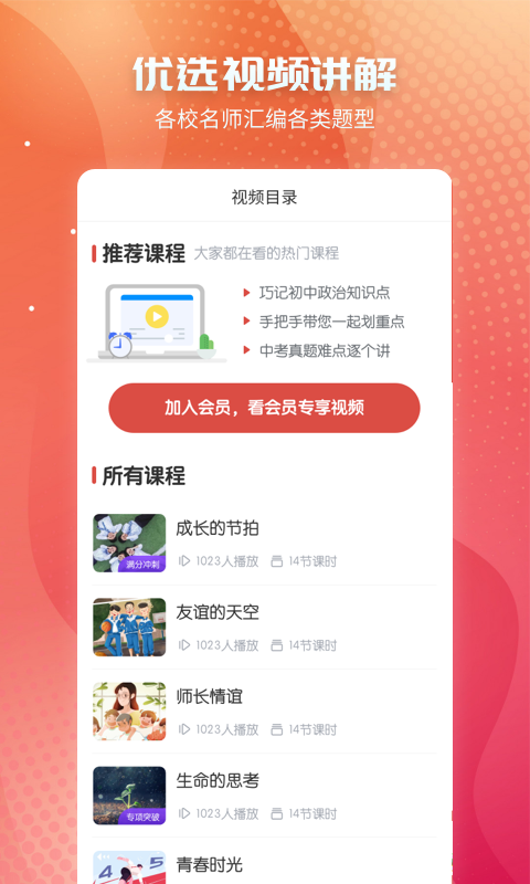4、筛选名师高分教学视频:初中政治app针对初中政治重难点知识点,有名校老师在线为你详细讲解,梳理难点知识线,提供高清讲解视频,且不限次数观看!更有云端储存学习记录,适应各种层次学生!