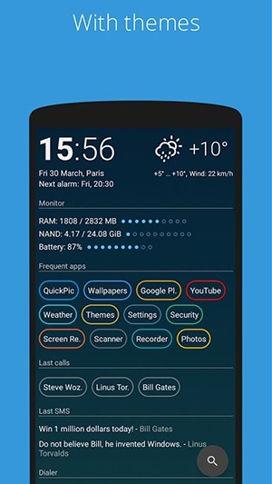 AIO Launcher一般又叫AIO启动器,是一款非常不错的桌面启动插件,软件内为大家提供了多种特色小工具可以使用,为用户日常使用手机带来便利,操作起来是非常简单的,功能丰富多样,支持定制特性与扩充插件选项,感兴趣的用户朋友们快来下载AIO Launcher吧!