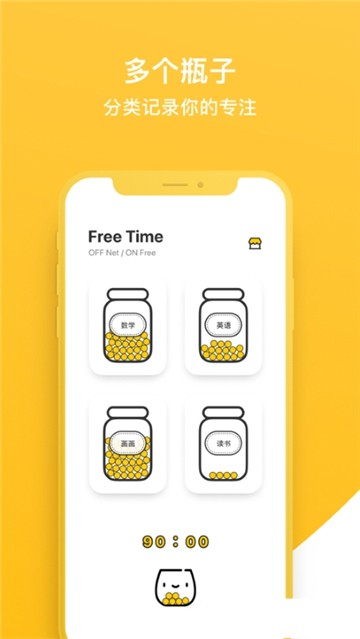 无学习成本,向罐子中抛入、弹出豆子调整时间,长按拖拽罐子到瓶子中开启专注状态。