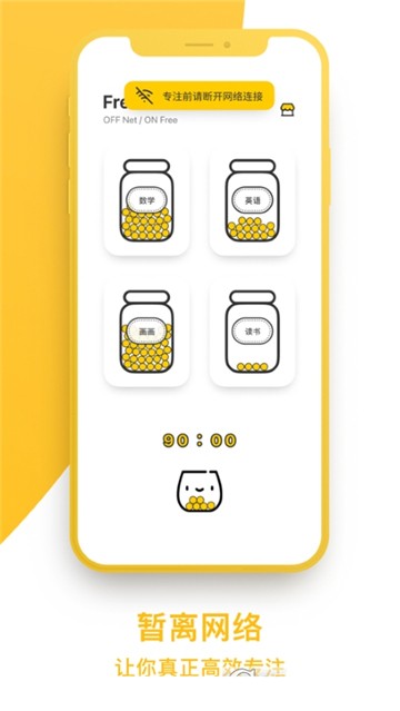短暂的处于断网状态,享受更加纯粹的自在工作学习状态,帮你养成隔绝打扰,专注高效的学习工作习惯。