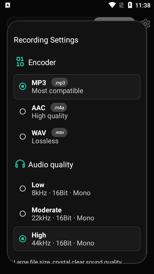 5、为用户提供了一系列可调节的音频录制质量设置,范围从 8kHz 到 44kHz。