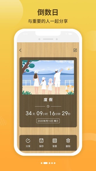 3、支持公历、农历的倒数日期计算提醒功能,重要事件醒目置顶,支持时间远近排序。