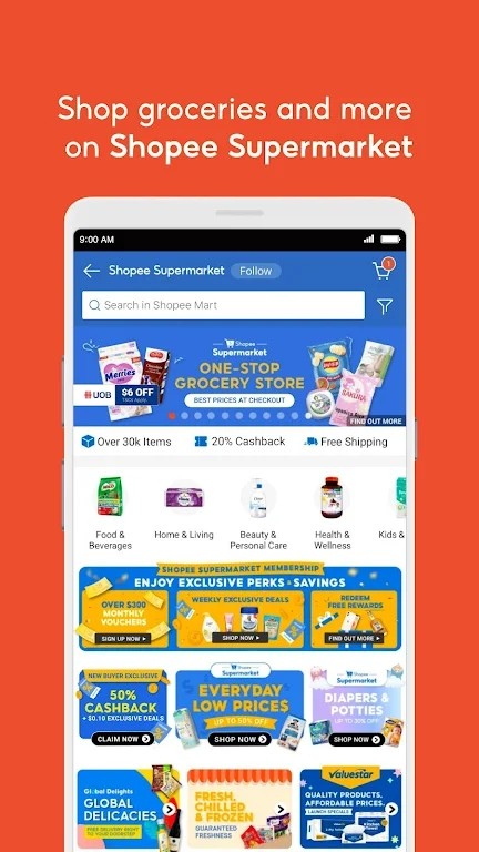 1、轻松浏览和购买多个类别,包括:健康与美容、电子产品、时尚、家居与生活、儿童与玩具等。