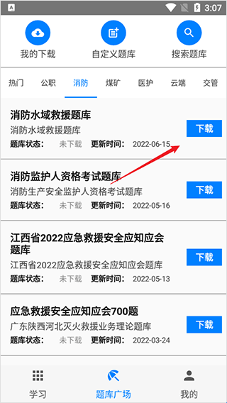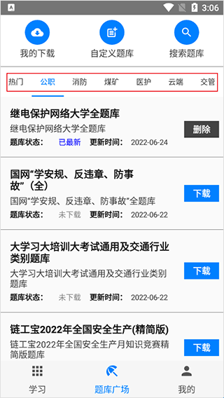 2、题库全面,支持百科、消防、党政、煤矿、金融、医学等各行业题库。