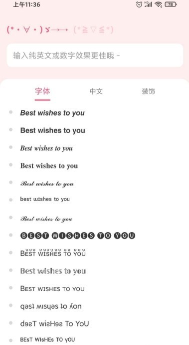 4、花样繁多:集成了超级多的花式字体,可以自行选择字体生成超多的文字。
