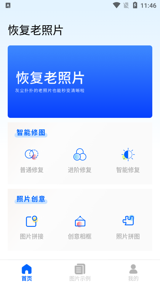 恢复老照片App是一款可以把老旧照片变清晰的软件,软件内置修复模式是非常丰富的,上传照片,选择想要修复的照片就可以轻松还原其清晰度、色彩,增强画质,同时该软件内还为大家整理了其他智能修复工具,图片拼接、照片拼图等都是非常实用的,有需要的小伙伴们快来下载恢复老照片App试试吧!