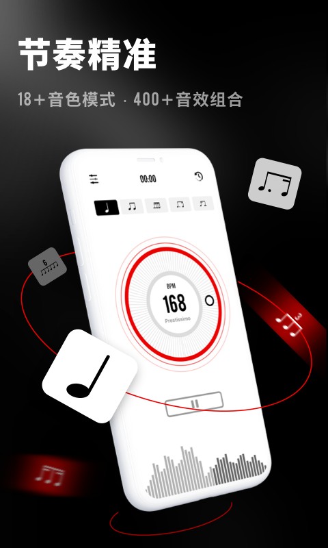 适合钢琴、吉他、尤克里里等各种乐器,帮你学习节拍节奏,玩转钢琴大师等音乐游戏