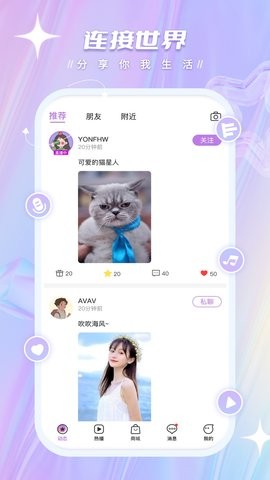 5、个性化展现:我们鼓励用户展现自我,无论是虚拟形象还是聊天环境,都可以按照用户的喜好进行定制。