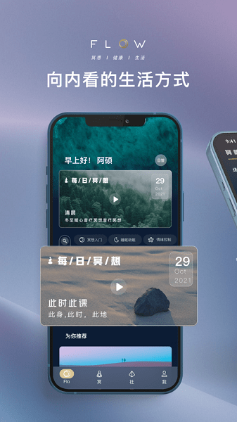 FLOW让冥想融入生活,我们借助互联网和科技的力量,打造一个健康时尚,每人每天都能使用的、身心健康生活方式app,帮助更多人释放焦虑、改善睡眠、提升能量、探知自我。愿越来越多人从冥想中受益。