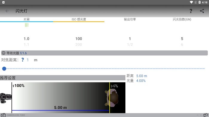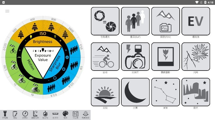 2、简易测光表:通过输入现场数据,计算出适合的快门速度,帮助摄影师进行曝光估测。