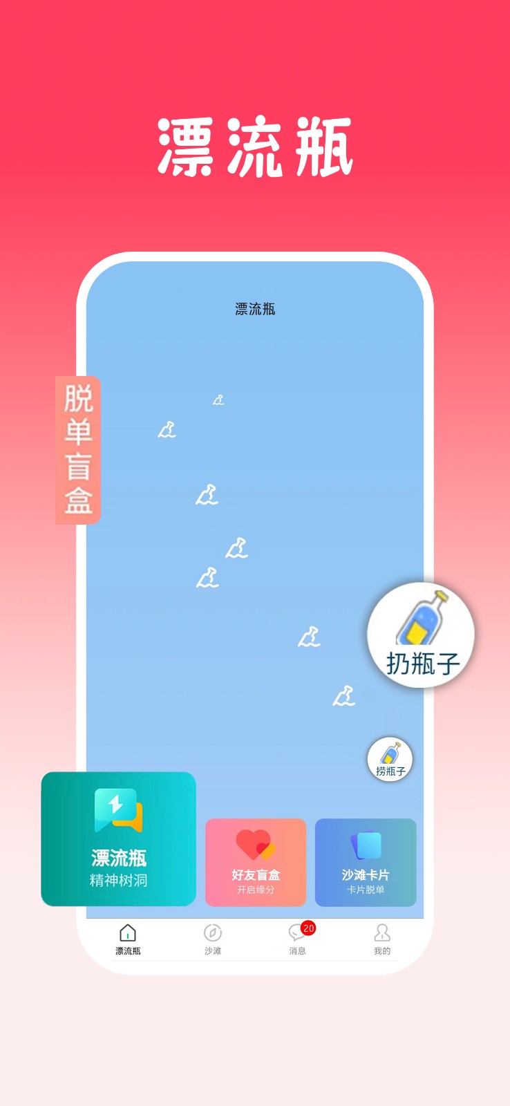 3、通过漂流瓶分享自己的喜怒哀乐和日常生活。