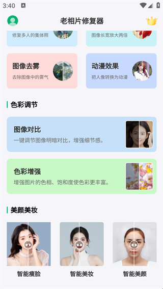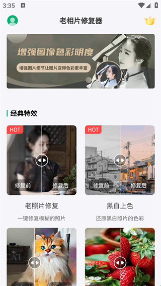 1、下载打开老相片修复器app官方版,进入主页;