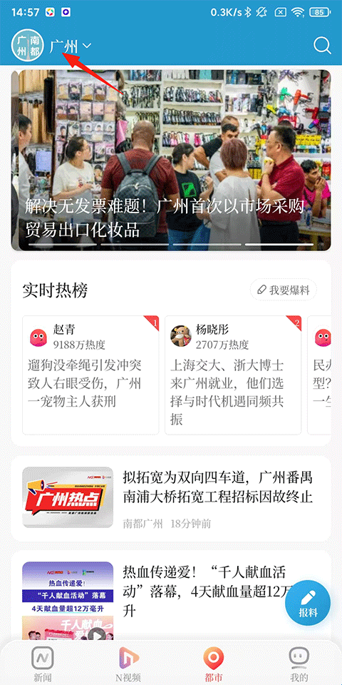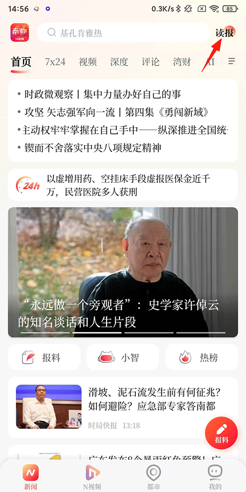 1、打开南方都市报手机客户端,在首页新闻页面可以浏览搜索感兴趣的新闻热点资讯。