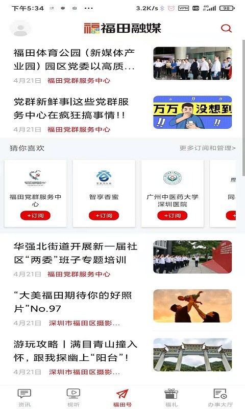 福田融媒是一款很不错的融媒体资讯软件,,里面涵盖了丰富的当地热点资讯,便于用户一手掌握最新动态,支持一键订阅自己感兴趣话题,给当地人生活也带来了很大方便!喜欢的可以点击下载哟!