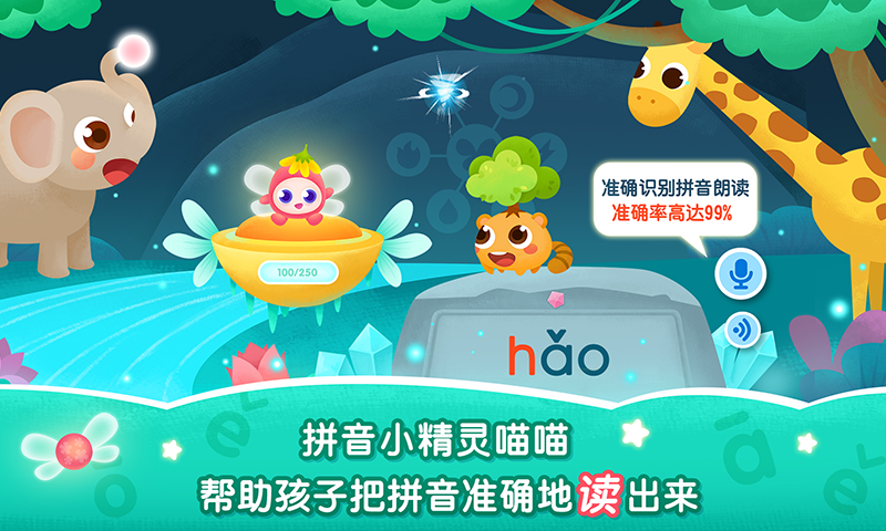 4、500+拼音声母和韵母拼读组合,准确的语音朗读识别,让孩子能够大声拼读拼音。