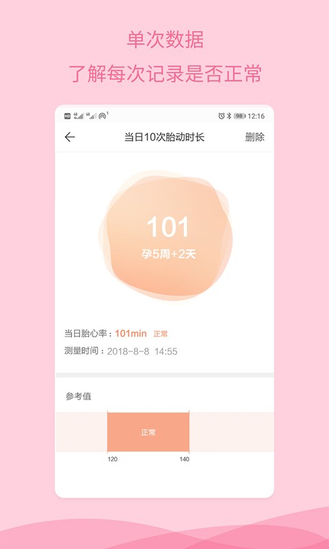 3、软件还能帮助孕妈妈记录胎动时长和胎心率,如果不正常就会及时提醒,非常贴心;