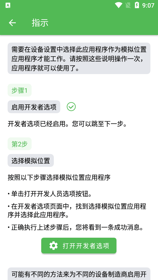 需要在设备设置中选择此应用程序作为模拟位置应用程序才能工作。请按照这些说明操作一次,应用程序就可以使用了。
