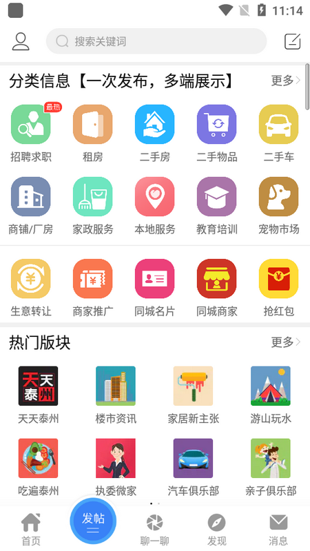 泰无聊论坛是一款好用的生活服务软件里面为用户提供了很多舒适的界面与便捷的操作方式里面还包括了泰州本地房产、汽车、家装、人才、健康、商业、财经、美食、旅游、花嫁、亲子、教育等行业的信息咨询,能够第一时间获得关于这些方面的信息,喜欢的话快点点击下载吧!