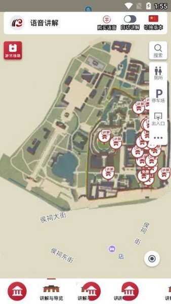 2、听景点语音讲解,体验旅游线路,查公共设施服务。