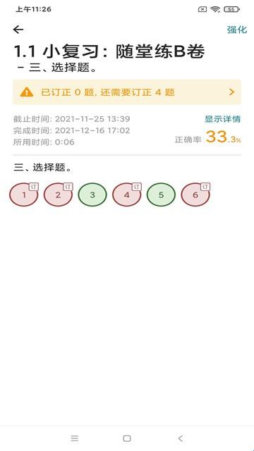 6、所有作业一键提交自动批阅,分数高低题错题对即时可知。