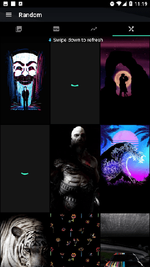 3、随机 > 动态从整个系列中随机显示的壁纸,向下滑动可刷新更多深色壁纸。