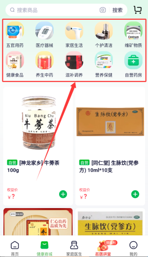 3、进入健康商城专区,可浏览并购买各类药品及医疗相关的健康产品。