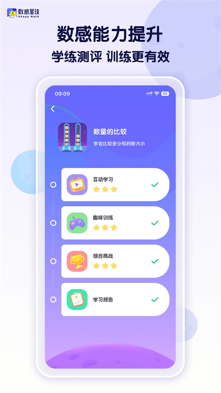 数感星球一款好用的学习数学的app,里面是专门为小学阶段的孩子们打造,通过游戏的方式来激发孩子们学习数学的兴趣,培养孩子的数学能力,需要的话快点点击下载吧!