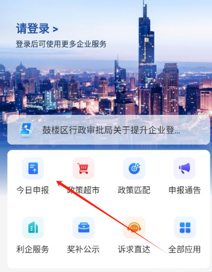 2、在首页可以浏览到众多功能,申报服务点击这里。