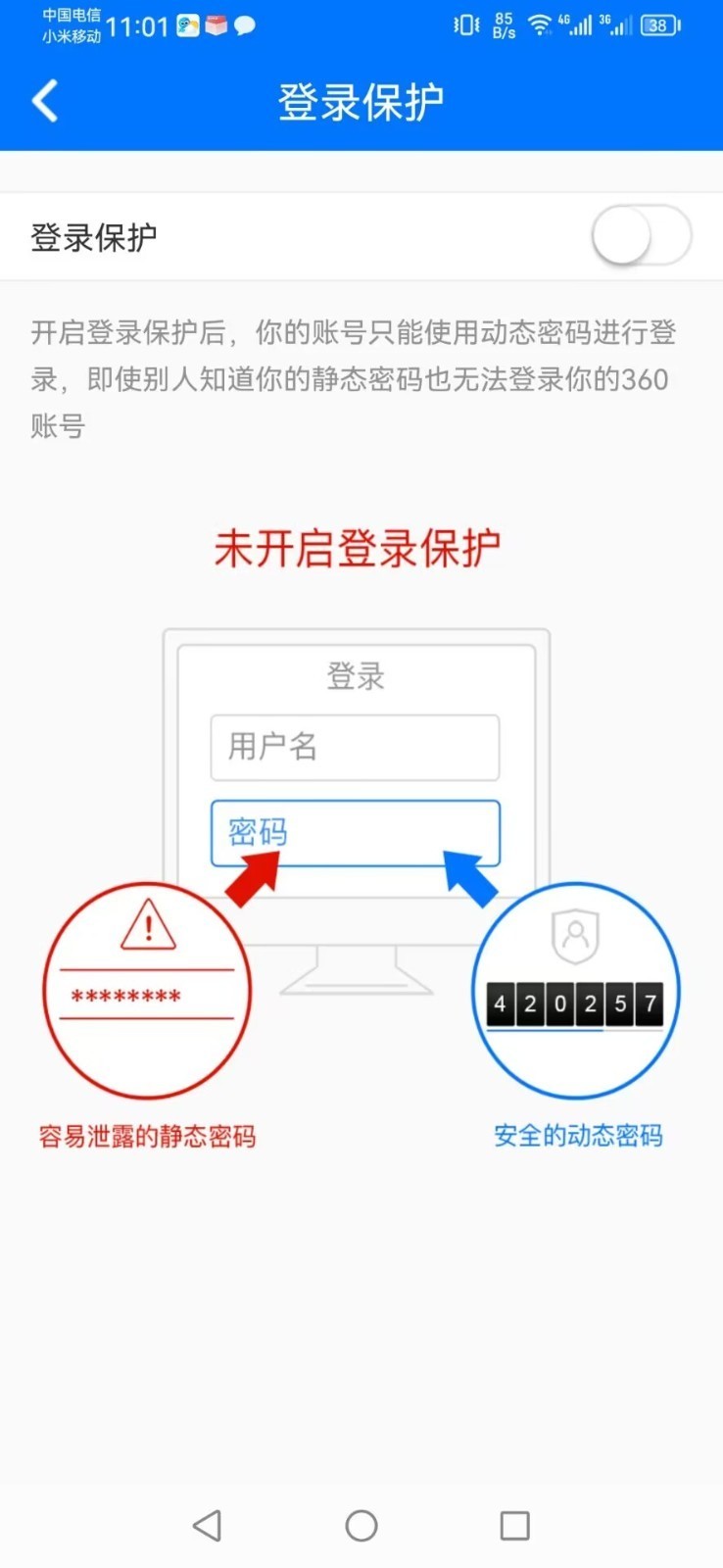 2、动态密码功能,可使用360帐号卫士提供的6位动态密码登陆360应用
