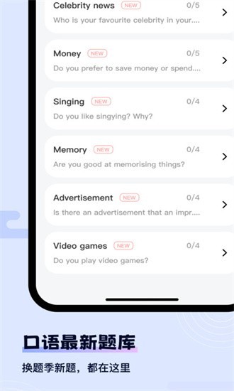 1、口语最新题库:第一时间更新的换题季新题,帮助你充分备考。