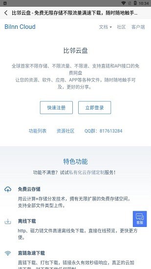 比邻云盘是一款云盘储存工具软件,空间储存不会限量限速,用户可以放心下载和出储存各种软件,软件界面简洁,功能丰富实用,可以满足用户的不同工作需求,帮助你更好的管理自己的文件,全部功能服务都是免费提供给用户使用的,为你提供更加便捷的云盘使用体验。