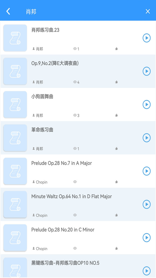 4、针对众多的曲谱都进行了非常详细的分类,曲谱根据作家进行分类,用户们可以直接在作家曲目中找到自己想要的曲谱。