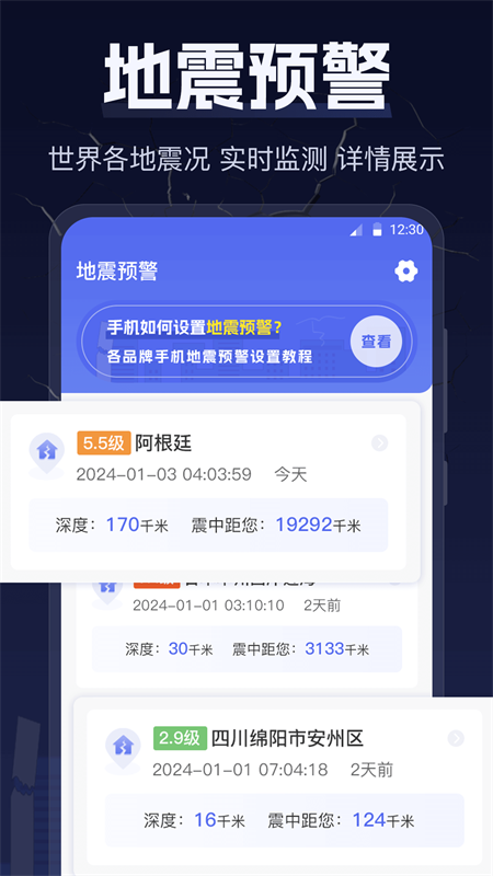 地震earthquake快报是一款非常好用的地震快报信息软件,专门为用户提供专业详细的地震知识科普,可以帮助用户及时了解身边地震的情况,软件内置信息推送和实时报警功能,可以在关键时刻及时确保用户安全并为你报警,为你提供更加便捷优质的生活服务。