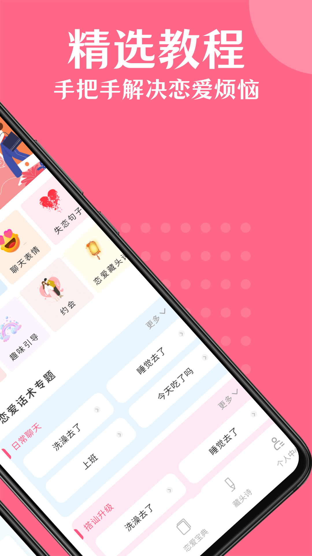 高情商对话精选软件是一款功能非常不错高情商对话聊天软件,同步更新各种不同的聊天话术内容,让我们面对各类社交场景都不会怯场,聊天对象不同,我们所需要的话题也是不一样的,可以试着在线模拟体验看看,全方位提升你的沟通实力,就算面对喜欢的人,也能勇敢去交流。