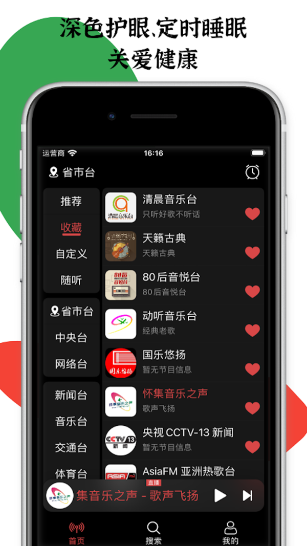 3、网络电台:怀集音乐之声、清晨音乐、AsiaFM亚洲音乐台、网络电台、华语经典等热门电台;