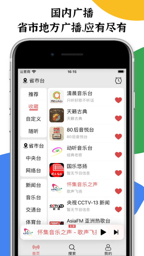 2、省市电台:不仅包含有北上广深*热门的电台,还包含有每个省市*热门的电台,让您无论身在何处,都可以收听到*熟悉的家乡声音;