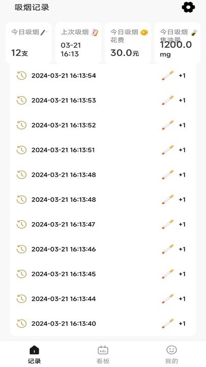 3、APP具备吸烟记录、数据看板、吸烟花费等多种功能服务。