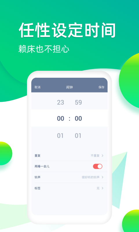 5、贪睡功能:响铃后,可选择延时,继续眯一会,也可支持原地翻转手机即可延迟闹钟响铃时间。