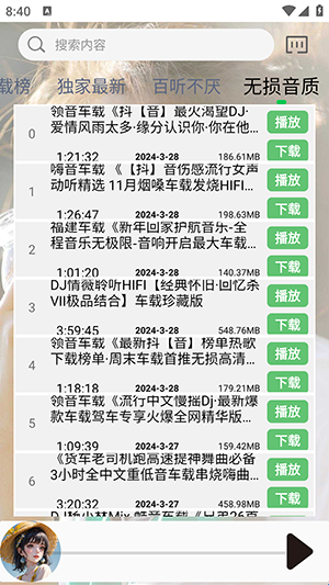 2、热门、下载榜、最新、百听不厌、无损音质榜,资源相当丰富,且实时更新。