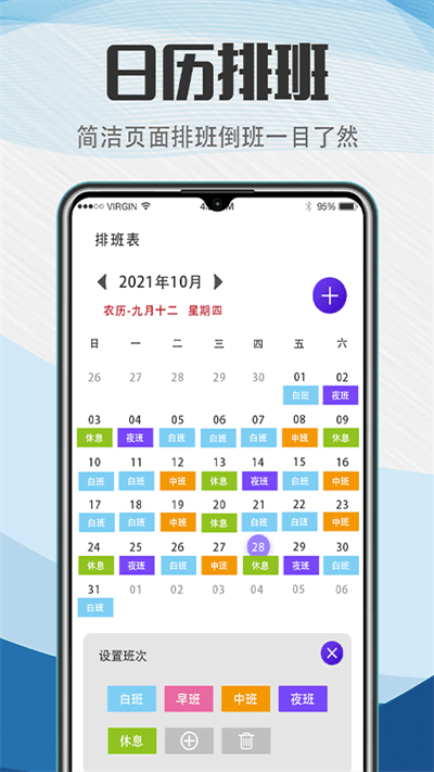 4、集合了倒班、排班、轮班、日历、闹钟提醒、日程提醒备忘录于一体。