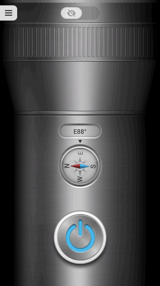 2、打开软件就可以看到指南针,点击按钮可开启手电筒。