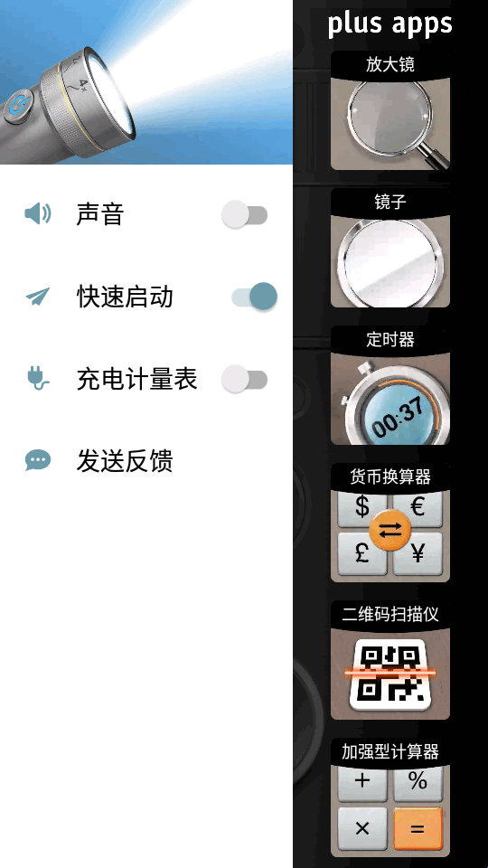 一款安卓超小全功能,加强型手电筒Flashlight Plus,手电筒,LED相机闪光灯,手机屏幕,预警信号,多彩屏幕,希望你能喜欢