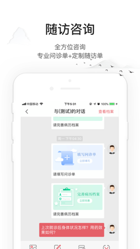 5、随访咨询:全方位咨询专业问诊单+定制随访单。