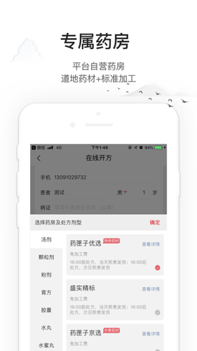 3、专属药房:自营药房和多家合作药房道地药材+标准加工+时效保证,