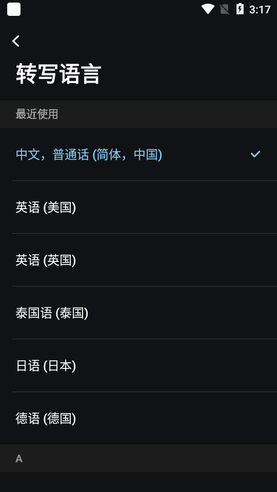 2、同传功能可以对近30种语言进行同声传译,选择好语言之后就可以进入同声传译了,一边录音就能一边翻译出来,可以对翻译出来的内容进行复制,还能从历史记录中找到并查看录音和翻译。
