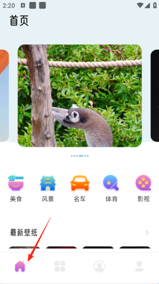 1、打开APP进入首页,根据你想要的壁纸类型选择类别,在其中找到你想要的壁纸进行设置。