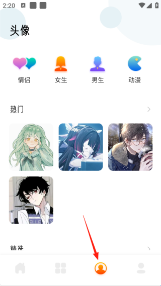 3、“头像”栏目中,用户还可以在这里找寻男女生头像,甚至可以找寻情侣头像,跟你的另一半一起更换吧。